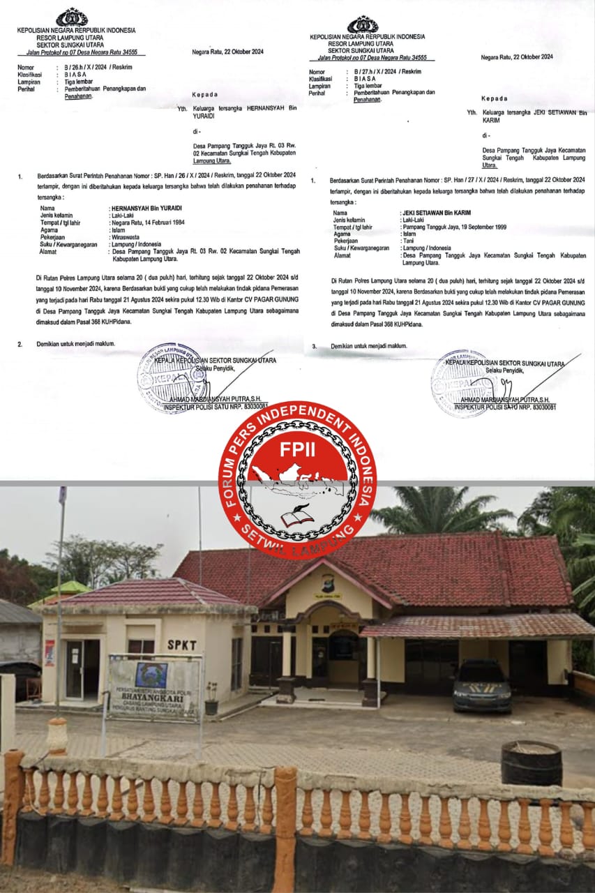 Lampung Utara. , – Penahanan Hernansyah dan Jeki warga Pampang Tangguk Jaya Kecamatan Sungkai Utara oleh Polres Lampung Utara Polsek Sungkai Utara yang sejak awal terkesan dipaksakan akhirnya mendapat perhatian publik.