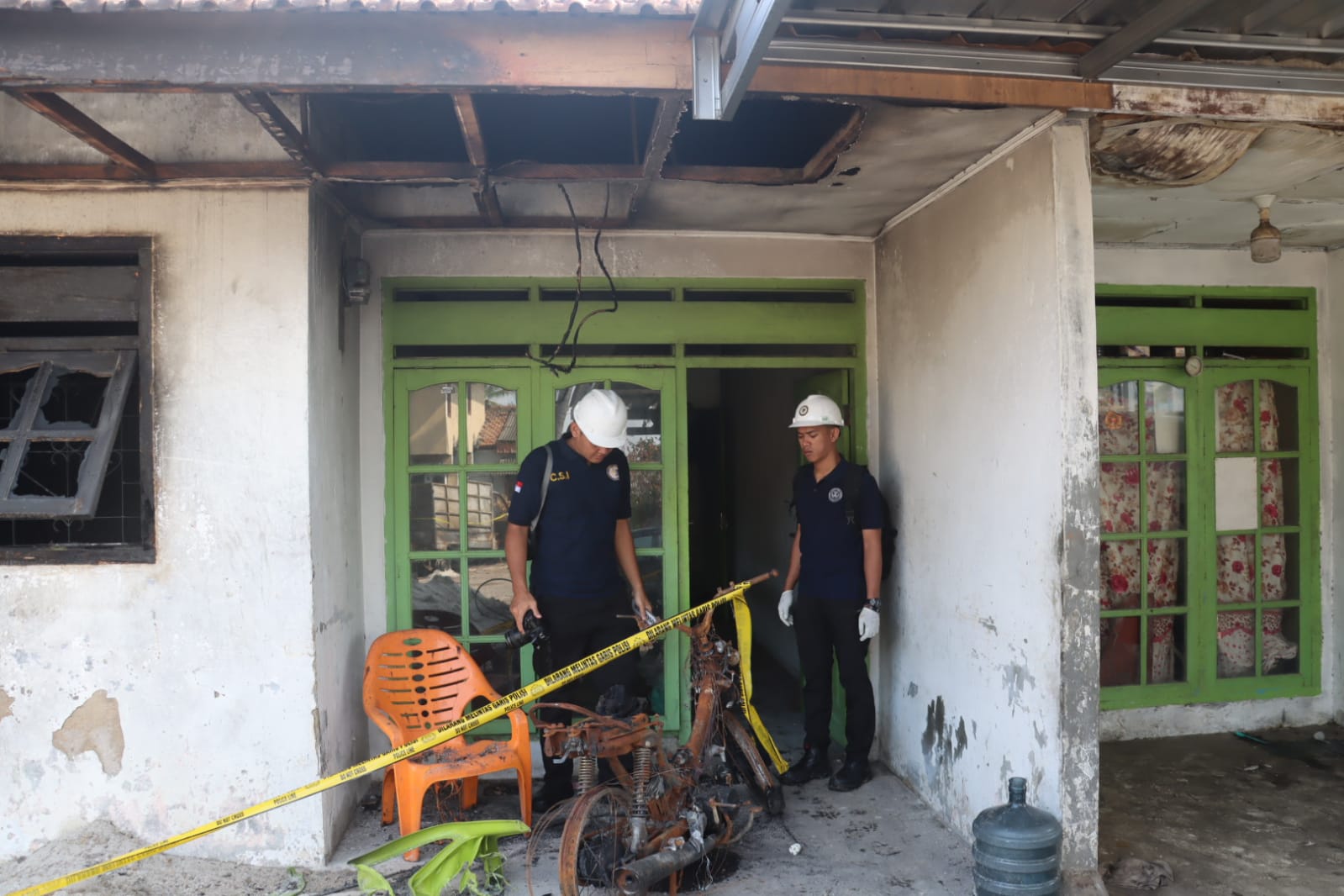 Tampak personel dari Puslabfor sedang melakukan pemotretan terhadap beberapa objek dan material yang mengalami kebakaran. Selain itu, mereka juga mengambil sejumlah sampel untuk keperluan pemeriksaan di laboratorium.