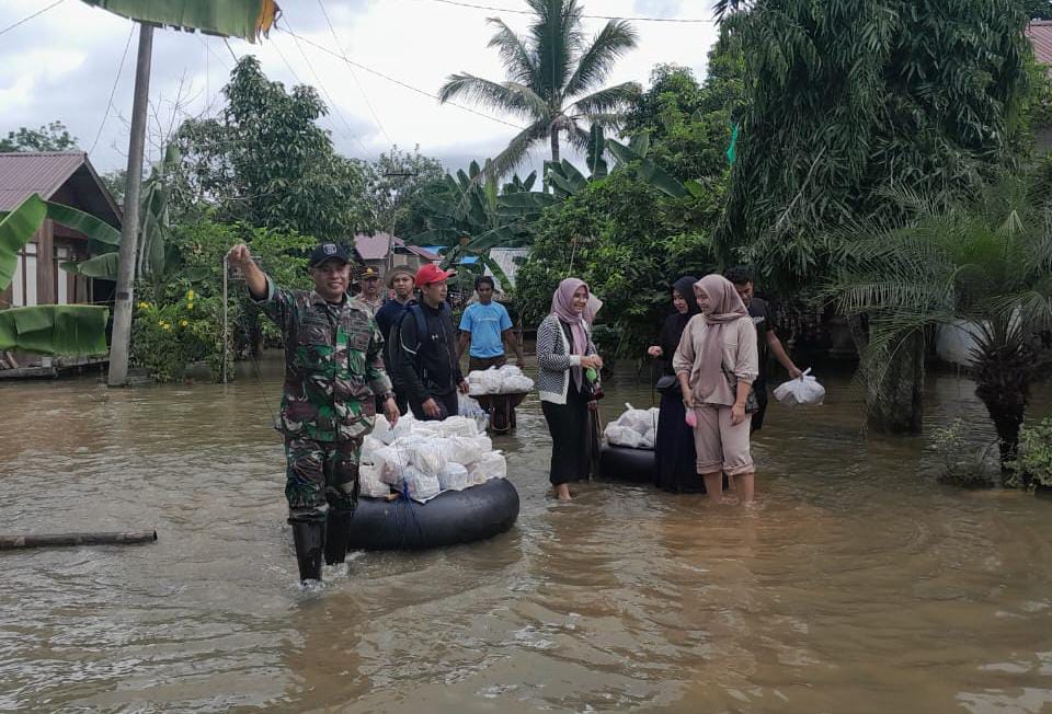 Jakarta,transpos.id – Prajurit TNI dari Koramil 1002-05/Pandawan bersama anggota Polsek dan Plt Camat Pandawan M. Affaw Al Bagag, S.I.P dibantu aparat Desa membagikan ratusan paket sembako kepada masyarakat terdampak banjir di desa Masiraan, Pandawan Kabupaten Hulu Sungai Tengah, Kalimantan Selatan. Demikian disampaikan oleh Kapuspen TNI Mayjen TNI Dr. Nugraha Gumilar, M.Sc., dalam rilis tertulisnya di Mabes TNI Cilangkap, Jakarta Timur, Jumat (12/1/2024).