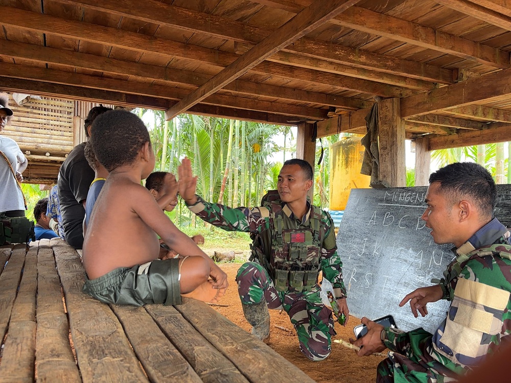 Boven Digoel – Satgas Pamtas Yonif 126/Kala Cakti melaksanakan program pengajaran dasar baca, tulis, dan hitung (Calistung) bagi anak-anak di Kampung Wametkapa guna mempermudah akses pendidikan dasar sekaligus program pemerataan pendidikan di wilayah perbatasan, Kamis (4/9/2025).