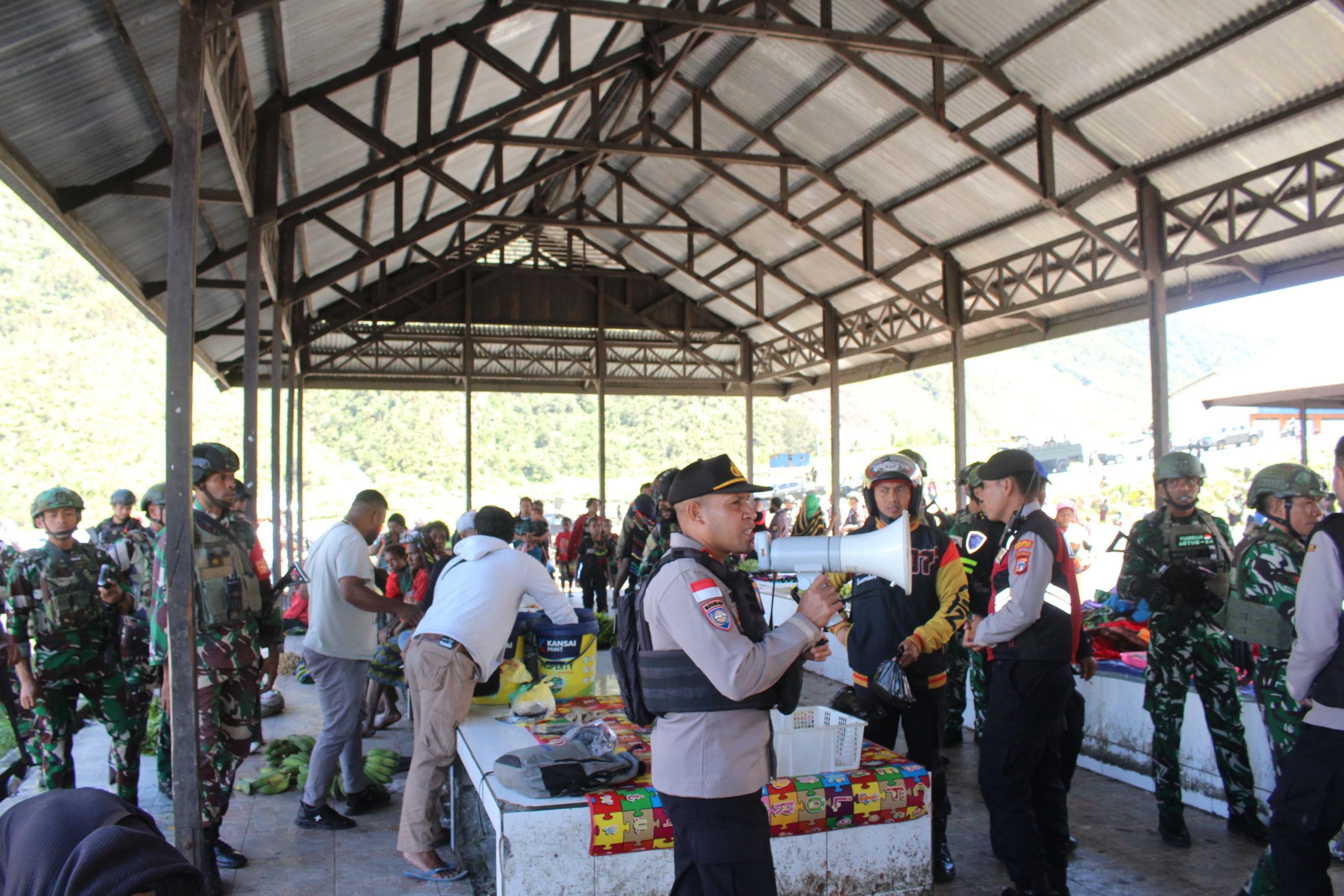 Puncak Jaya – Dalam rangka menjaga keamanan dan ketertiban di wilayah Kabupaten Puncak Jaya, Babinsa kodim 1714/PJ diterjunkan untuk melaksanakan patroli cipta kondisi bersama unsur TNI/Polri dan pemerintah Daerah Kabupaten Puncak Jaya, Sabtu (13/12/2025).