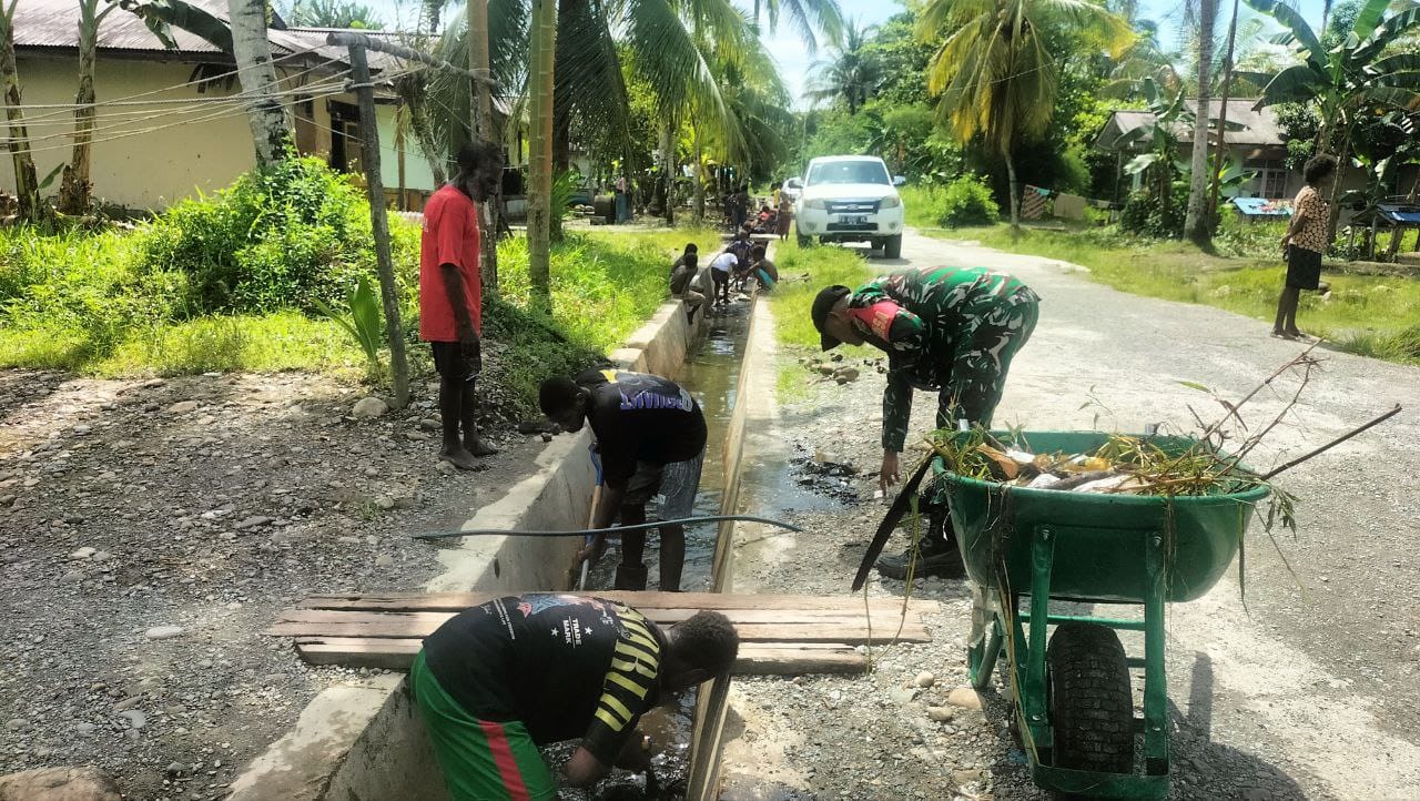 Timika, transpos.id – Dalam upaya menjaga kebersihan lingkungan serta menumbuhkan pola hidup sehat, Babinsa Koramil 1710-07/Mapurujaya Serka Selamet Riyadi ajak warga binaan kerja bakti bersihkan parit di Kp. Ayuka, Distrik Mimika Timur Jauh, Kab. Mimika, Jumat (21/11/2025). Kegiatan ini berfokus pada pembersihan parit di kanan dan kiri badan jalan untuk melancarkan aliran air, mencegah genangan, dan menjaga kebersihan lingkungan sekitar.