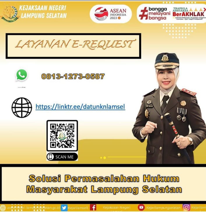 Transpos.id. Kalianda – Lampung Selatan Layanan E-Request Bidang Perdata dan Tata Usaha Negara Pada Kejaksaan Negeri Lampung Selatan merupakan inovasi yang ditujukan untuk masyarakat luas yang membutuhkan konsultasi maupun informasi terkait perdata dan usaha negara, masyarakat sebagai pengguna layanan E- Request akan lebih mudah dan efisien dalam berkonsultasi dan melaporkan permasalahan yang sedang dihadapi oleh pengguna layanan, karena masyarakat dapat langsung berkomunikasi melalui ERequest yang merupakan layanan melalui Whatsapp.