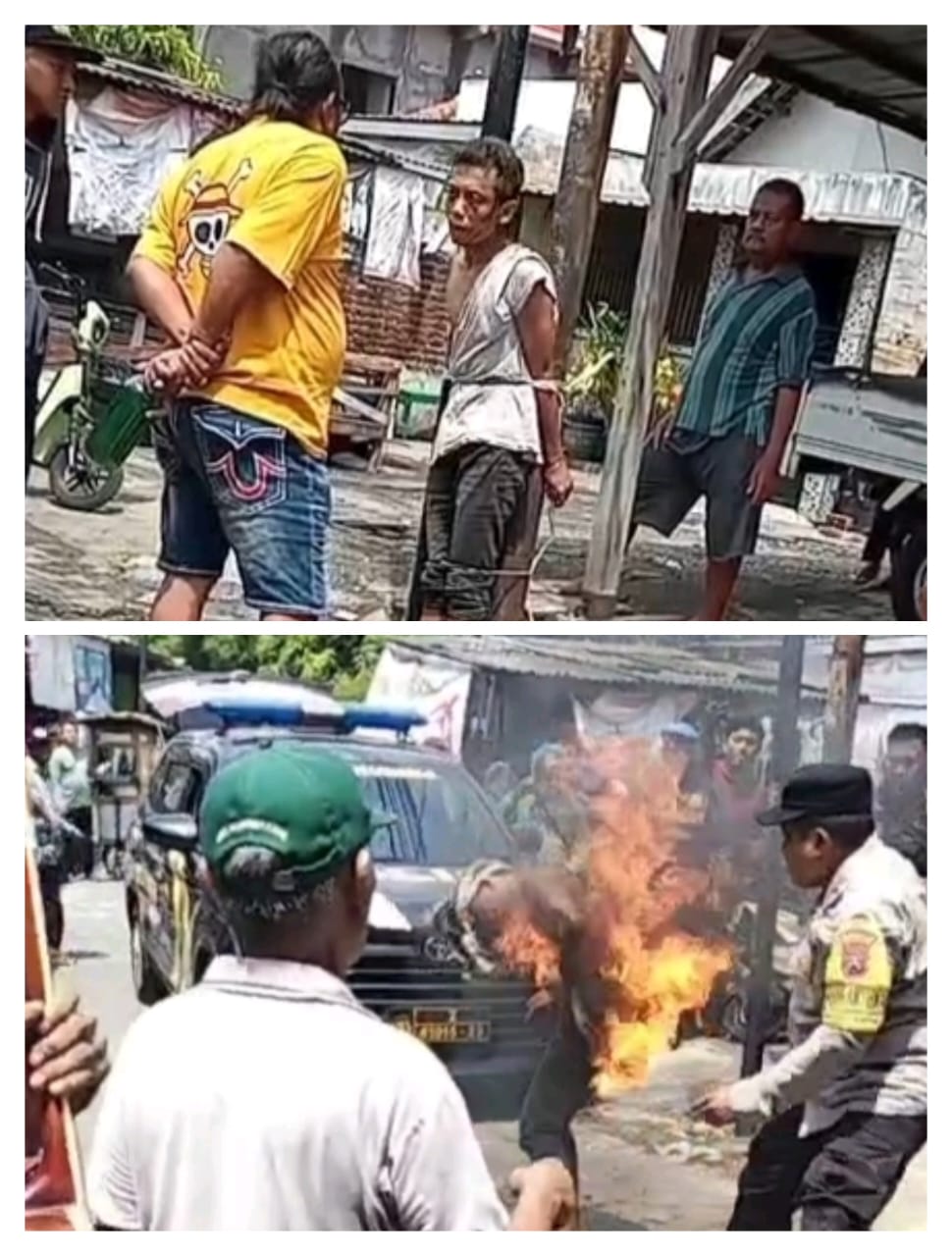 Namun ketika di lokasi tiba-tiba petugas satpol PP yang rencananya akan membuka ikatan dibagian tangan dengan menggunakan korek api, tetapi apabila yang terjadi. Pelaku justru terbakar dan meronta-ronta sembari melarikan diri.