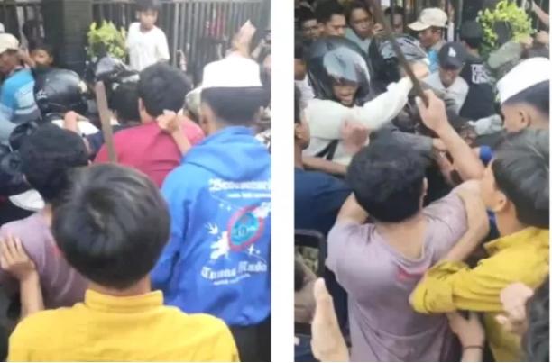 Dalam vidio viral di Medsos. pelaku saat itu sempat diamankan di salah satu rumah warga, begitu akan dibawa oleh petugas kepolisian, ketika keluar pintu rumah warga. pelaku langsung di serang massa hingga polisi yang berjumlah tiga orang tidak bisa membendung amarah masa yang geram.