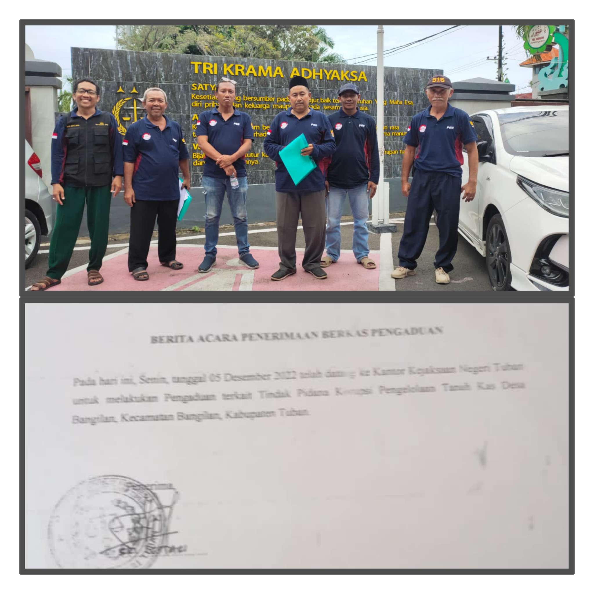 AS menambahkan, setelah PBR sampai di kantor Kejari Tuban, mereka menyerahkan berkas pengaduan dan diterima oleh Adit, Kasi Intel Kejari Tuban. Adit mengatakan, berkas pengaduan tersebut akan dikaji ulang oleh pihaknya.