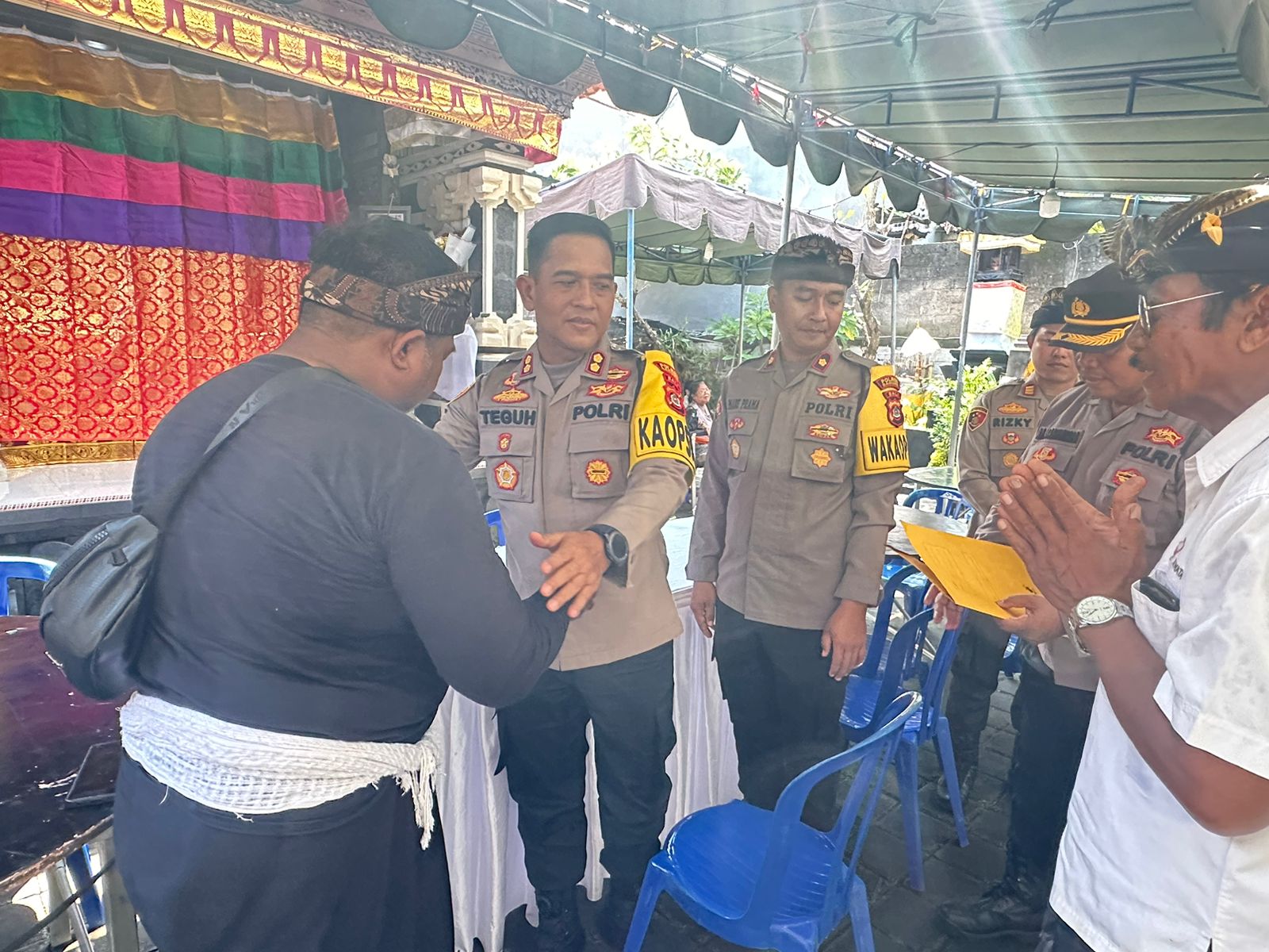 Turut hadir mendampingi Kapolres Badung, Wakapolres Kompol I Made Pramasetia, S.H., S.I.K., M.H. Kabag SDM Kompol A.A Gede Rai Darmayasa, S.H., M.H. Kapolsek Kuta Utara AKP Muhammad Rizky Fernandez, SIK. MH., PS. Kanit Provos Polsek Kuta Utara Aiptu I Nyoman Sudara, S.Sos. dengan mengunjungi rumah duka Aiptu Anak Agung Ngurah Sutanaya, SH jabatan PS. Panitmin Unit Intelkam Polsek Kuta Utara yangmana isteri yang bersangkutan meninggal dunia karena sakit.
